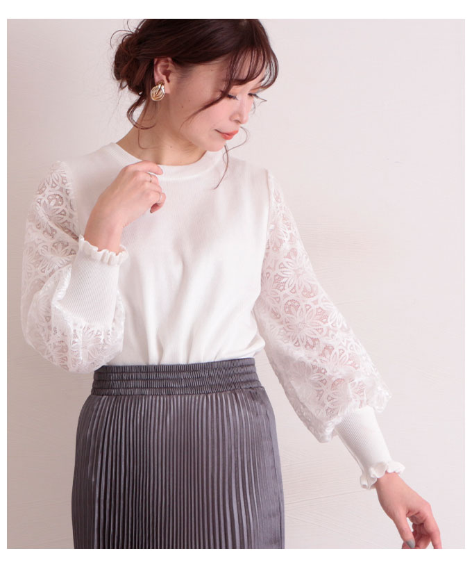 ポワンとした透け感のあるお袖は上品なレース素材です。