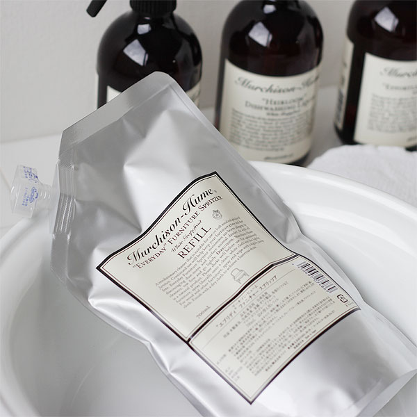 品名:家具用合成洗剤 詰め替え用レフィル 用途:木製家具、合成皮革、金属・ガラス製品、布張りソファなど アロマ:ホワイトグレープフルーツ 成分:界面活性剤(0.6%アルキルグリコシド)、セージエキス、グレープフルーツ果皮油、アロマエッセンス 液性:弱アルカリ性 容量:700ml“Why does everything made to keep a house clean have to be so ugly?” どうして家を清潔にするものなのに 美しくないの? Murchison-Humeが目指したのは 環境や、身体・肌に優しいだけでなく、きれい好きで、おしゃれな人達の暮らしに寄り添うこと。