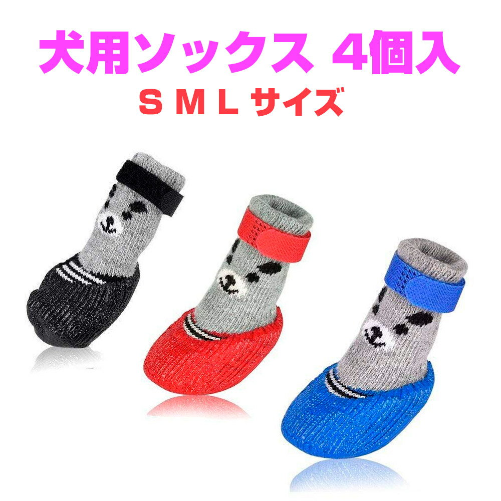 犬用ソックス 犬 ソックス 4個入 S・M・Lサイズ 靴下 防寒 滑り止め マジックテープ付き 暖かい 犬用 犬用靴下 可愛い[送料無料]